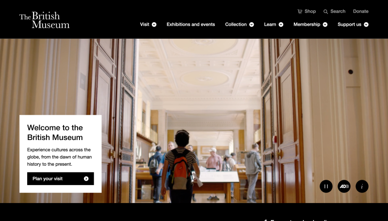 The website makes discovery effortless, with a prominent search bar and well-organised navigation that guides users through exhibitions, collections and events.