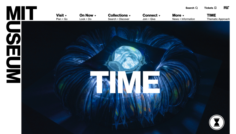 An emblem from the museum’s original seal serves as the homepage’s dynamic framing device. As users scroll, the webpage zooms into a high-quality embedded video, drawing focus to the featured content and encouraging further scrolling.