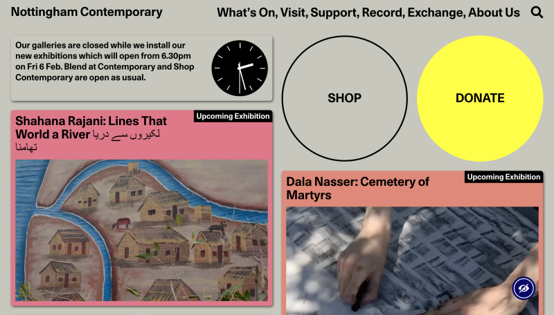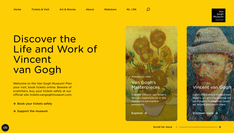 Well-structured navigation means that the website is well-equipped to support a range of user needs, from straightforward tasks like planning a visit or finding an exhibition, to more exploratory browsing across artists and individual works. Together, these design choices allow for open-ended discovery without friction.