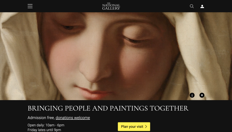 The National Gallery in London is home to over 2,600 paintings. Its website design is deliberately understated, with a calm authoritative presence that reflects the prestige of the collection.